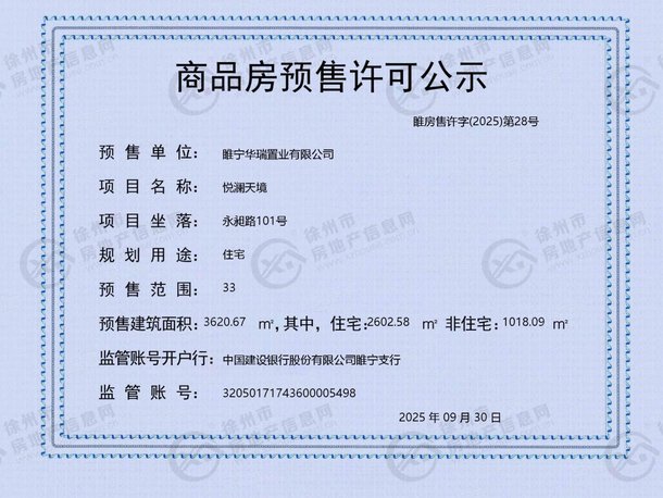 睢房售许字(2025)第31号 查看图片 | 2025-10-24 | 34# |
