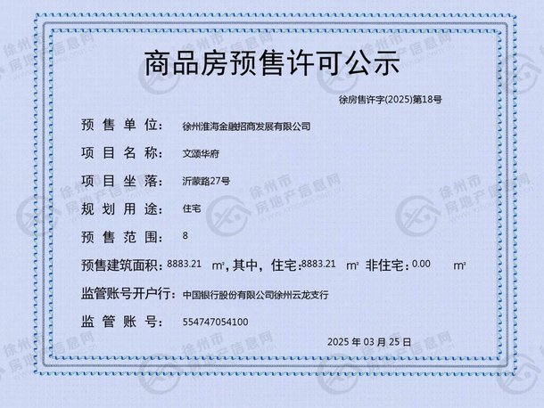 徐房售许字(2025)第18号 查看图片 | 2025-03-25 | 8# |