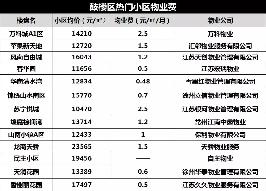 徐州60个热门小区物业费曝光!
