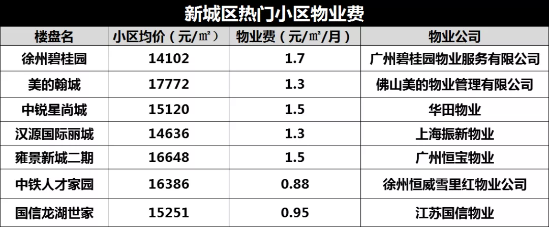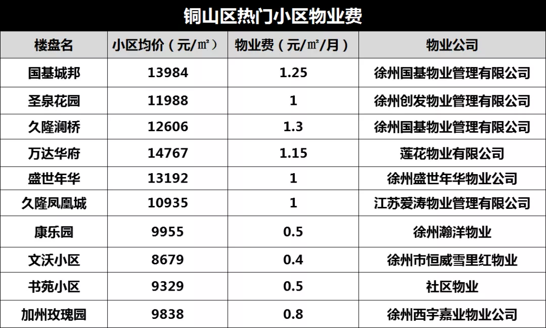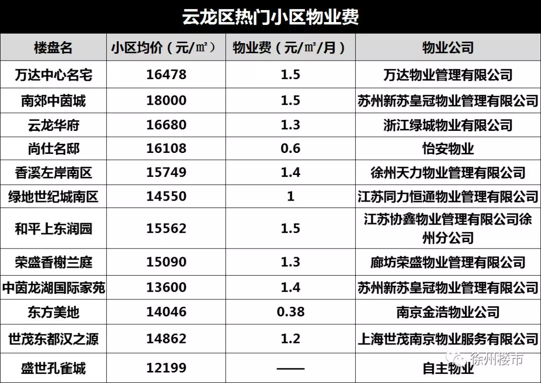 今天,我盘点了徐州60家热门小区的物业费,其中有小区物业费只有0.3元/㎡/月,也有小区高达4.5元/㎡/月!