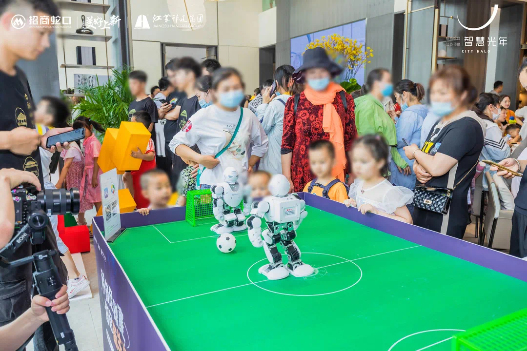 仪式完成后,来宾纷纷入场参观,领略匠心之美,精致冷餐尽情品尝,独特表演引人入胜,互动游戏区也热闹非凡,足球机器人吸引了大批围观者,萌宝们手动操作,兴奋不已,还有鲁班锁、扇子绘画等DIY活动,让孩子们充分发挥创作天赋,欢笑不断。