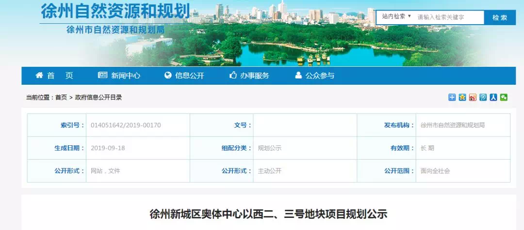 9月18日,徐州市自然资源和规划局将徐州新城区奥体中心以西二号(B地块)、三号(A地块)地块项目规划进行公示。