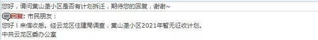 回复: 经云龙区住建局调查,黄山垄小区2021年暂无征收计划。