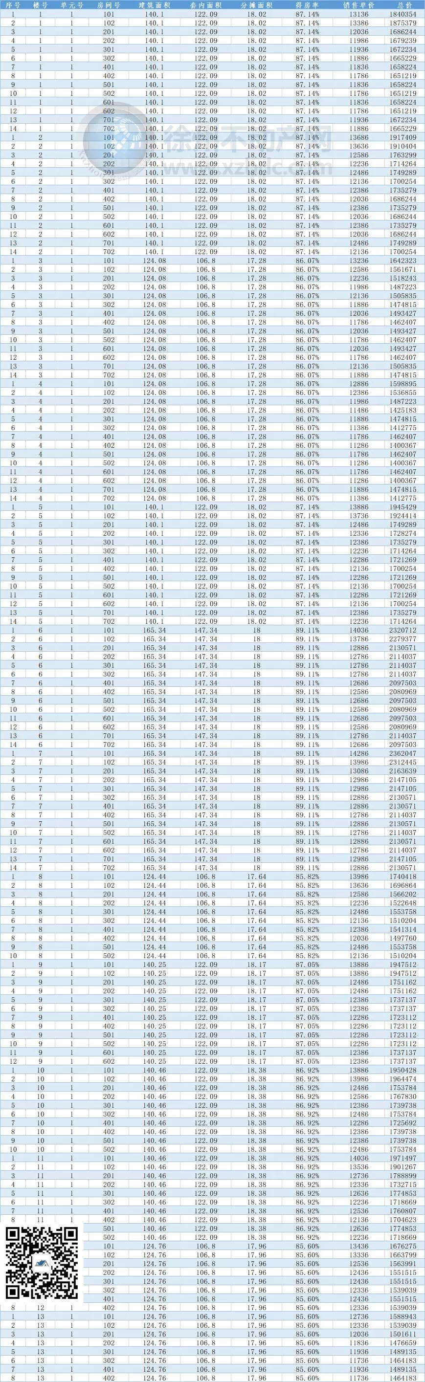 目前正在认筹中,认筹金额5万元,均价12500元/㎡。 价格公示如下: