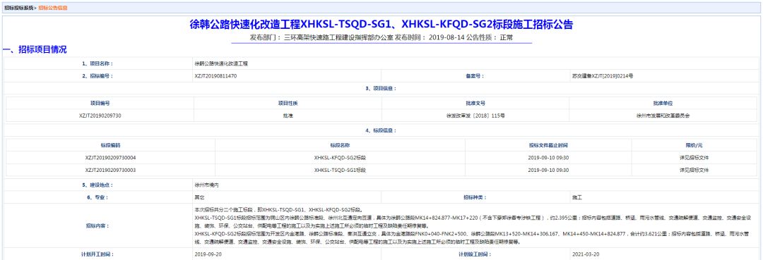 8月14日,三环高架快速路工程建设指挥部办公室,发布徐韩公路快速化改造工程,部分路段施工招标公告,其中包含铜山区境内道路!