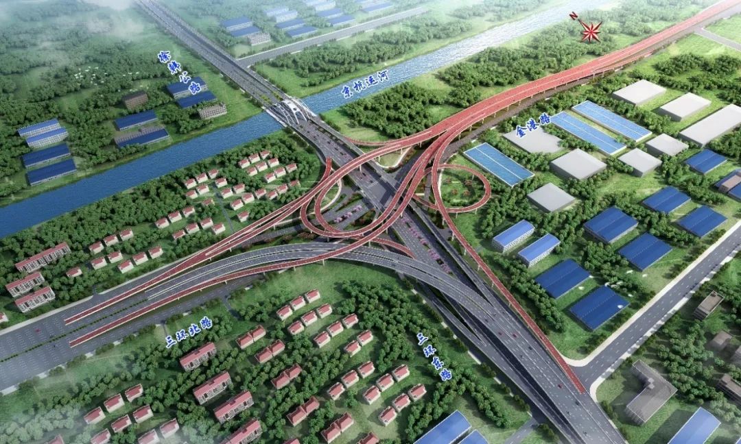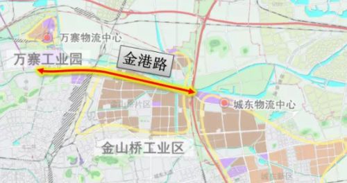 金港路段长约1800m,主线设计速度为100km/h,辅道设计速度为 60km/h,西起秦洪立交, 东至锦绣路。
