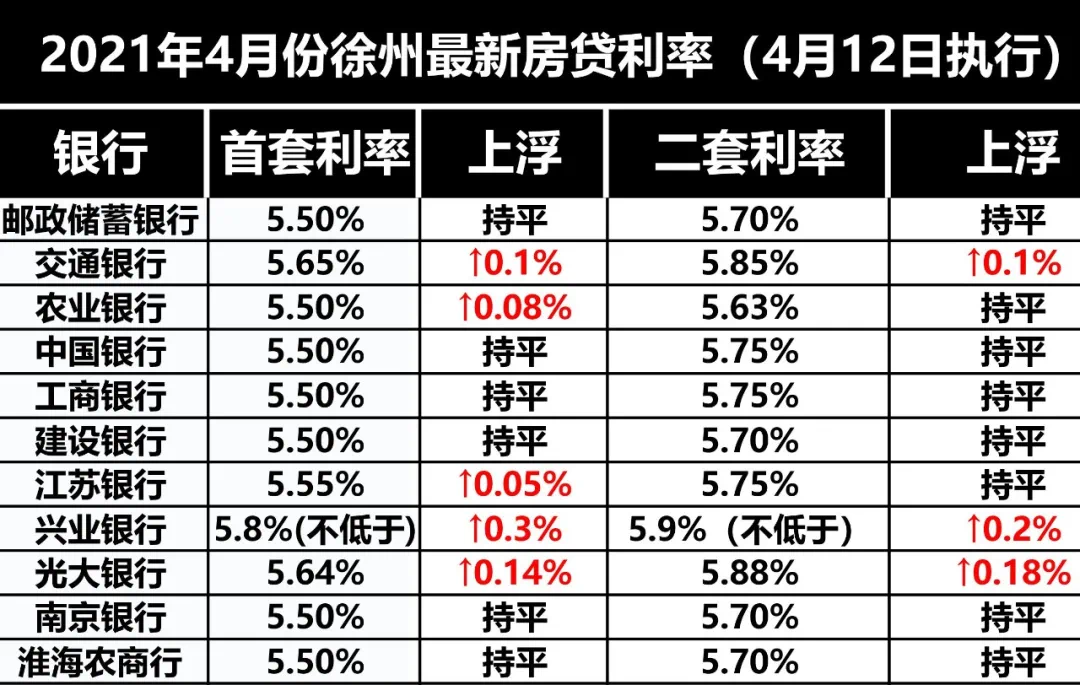 重磅消息!从下周一起,徐州有5家银行上调房贷利率。
